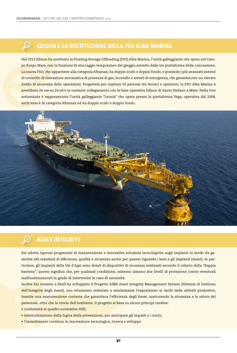 Printed layout and infographics for O&G Environmental report